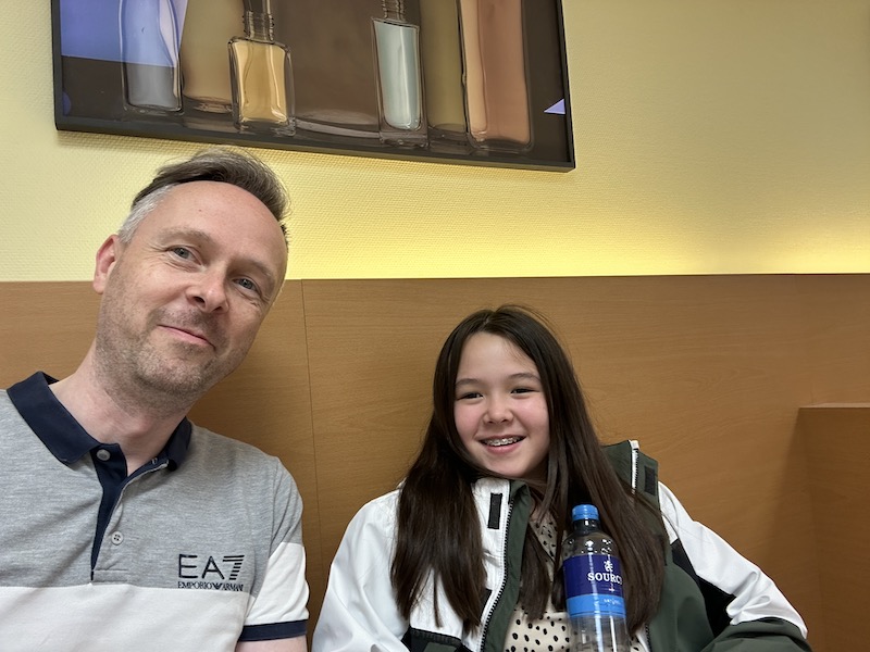 Dan moet ik naar afdeling radiologie. Chloé gaat mee, maar mag natuurlijk niet mee naar binnen. Ze verwacht dat ze even moet wachten, maar ik ben bijna 20 minuten later al weer klaar.