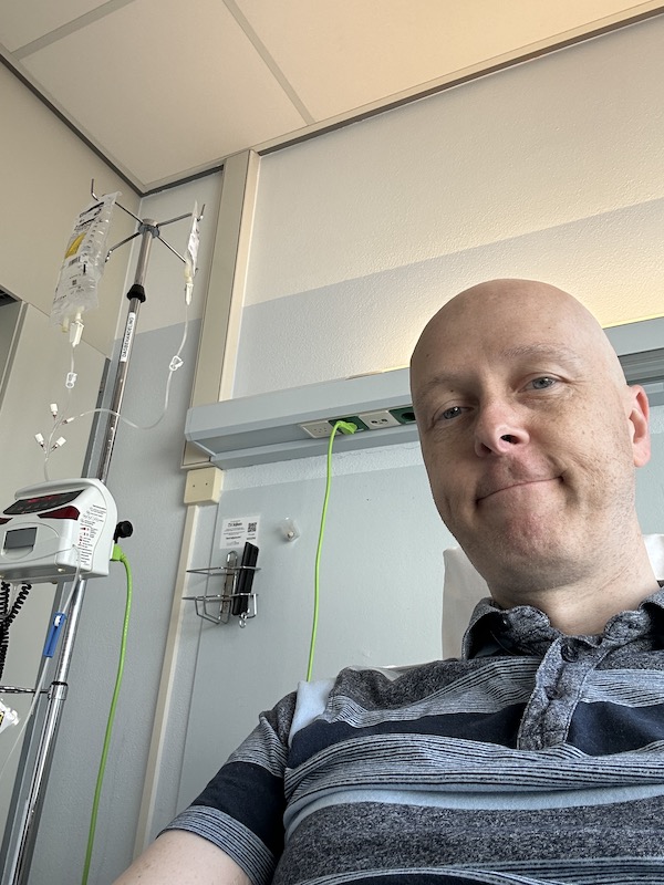 Kan het heel spanned maken, maar het lijkt veel op de vorige blogs… Binnenkomen, zitten, aansluiten, wachten, slapper worden, al viel dat deze keer erg mee. En dan rond een uur of 16:00 naar huis, opgehaald door Annielief.